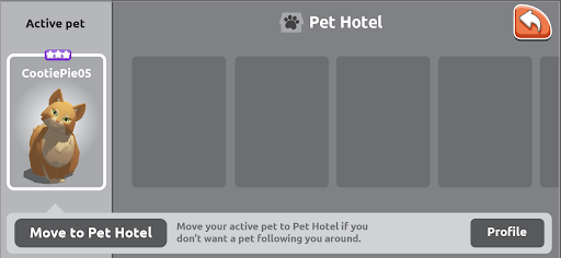アクティブなペットを連れ歩きたくない場合は、そのペットを選択してペットホテルに移動させることができます。